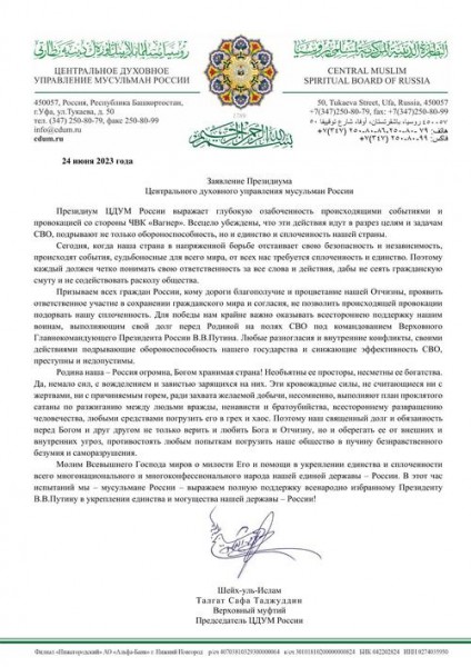 Президиум ЦДУМ России выражает глубокую озабоченность происходящими событиями и провокацией со стороны ЧВК «Вагнер». Всецело убеждены, что эти действия идут в разрез целям и задачам СВО, подрывают не только обороноспособность, но и единство и сплоченность нашей страны. Сегодня, когда наша страна в напряженной борьбе отстаивает свою безопасность и независимость, происходят события, судьбоносные для всего мира, […]
