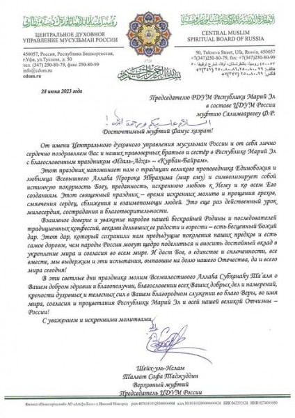 В местной мусульманской религиозной организации «Махалля» п. Мари-Турек в честь начала месяца Мухаррам и начала нового 1445 года по Хиджре, имам-мухтасиб Даниял хазрат организовал маджлис, на котором муфтий Ф. Салимгареев проинформировал о работе РДУМ РМЭ, призвал к единству правоверных. На этом собрании присутствовали имамы района, прихожане мечети.