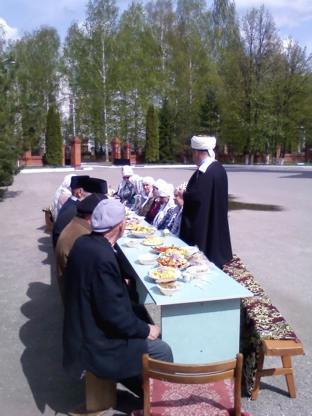 После праздничного парада и коллективного намаза в честь 71 годовщины Победы над фашизмом, в Соборной мечети г. Йошкар-Олы прошла встреча с труженниками тыла и детьми войны. За праздничным столом ветераны рассказывали о тяжелых днях войны. От прихода участникам Собрания были розданы подарки.