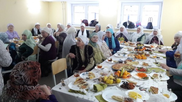 После пятничного намаза руководство РДУМ РМЭ, Совет мечети поздравили дорогих мам, жён, сестёр с праздником весны. В столовой медресе для женщин был приготовлен праздничный обед.