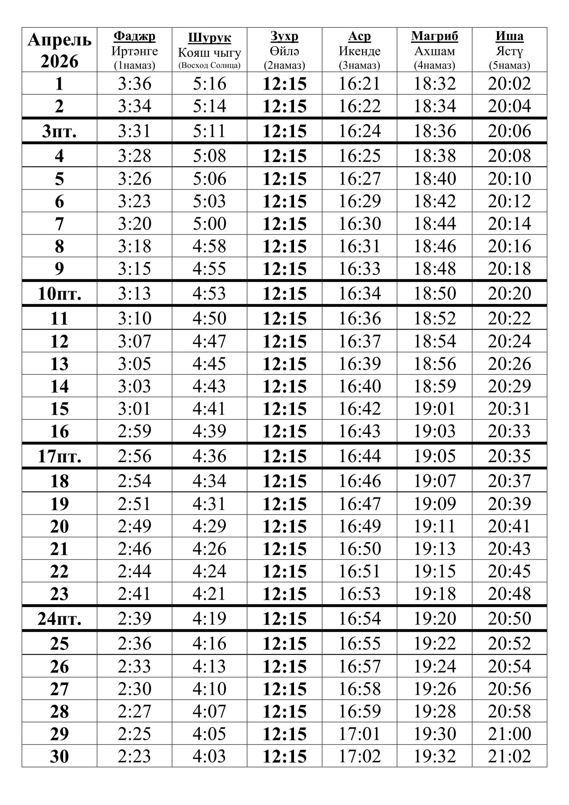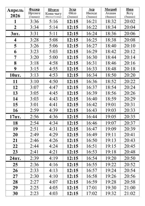 Расписание намазов в Йошкар-Оле