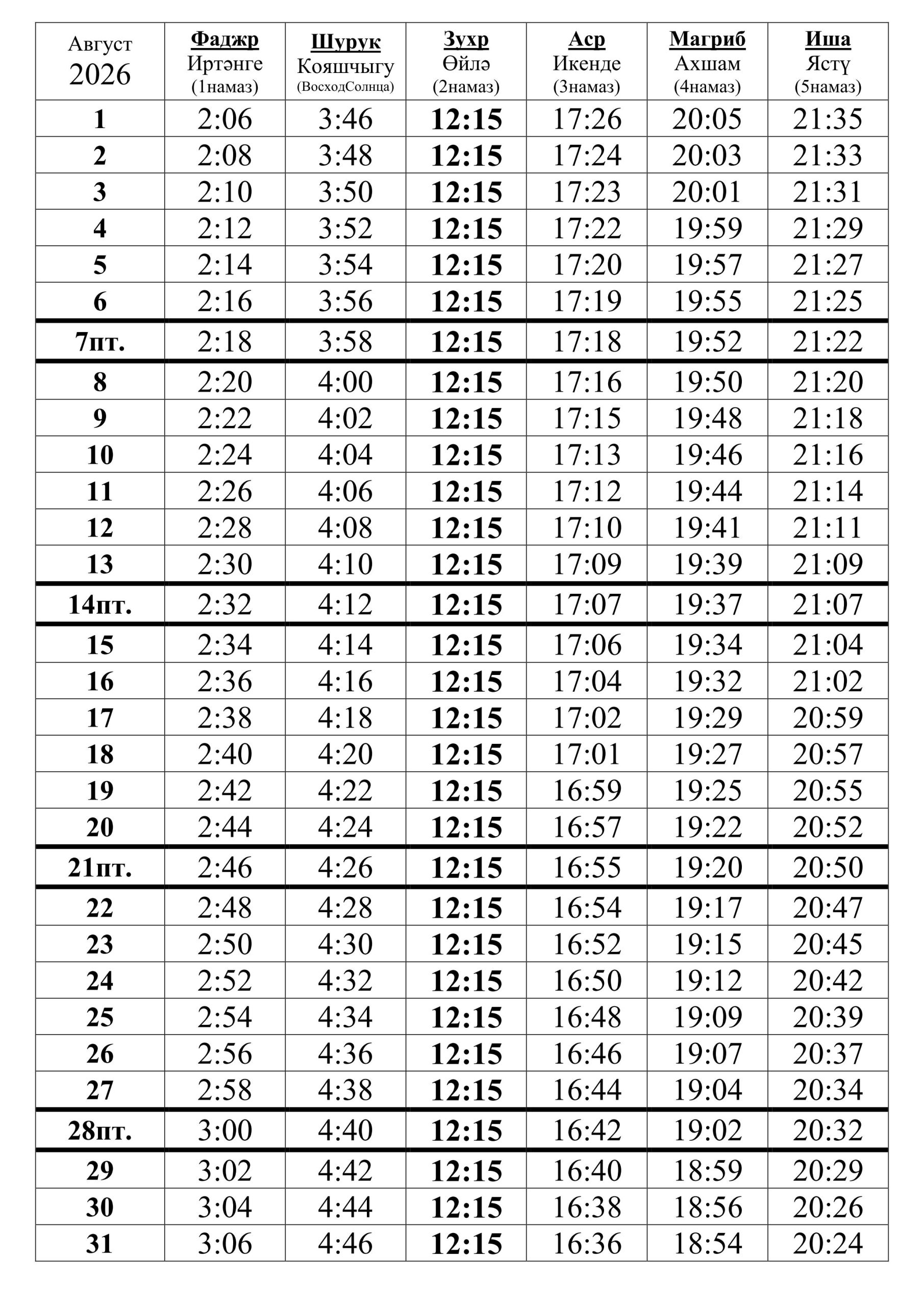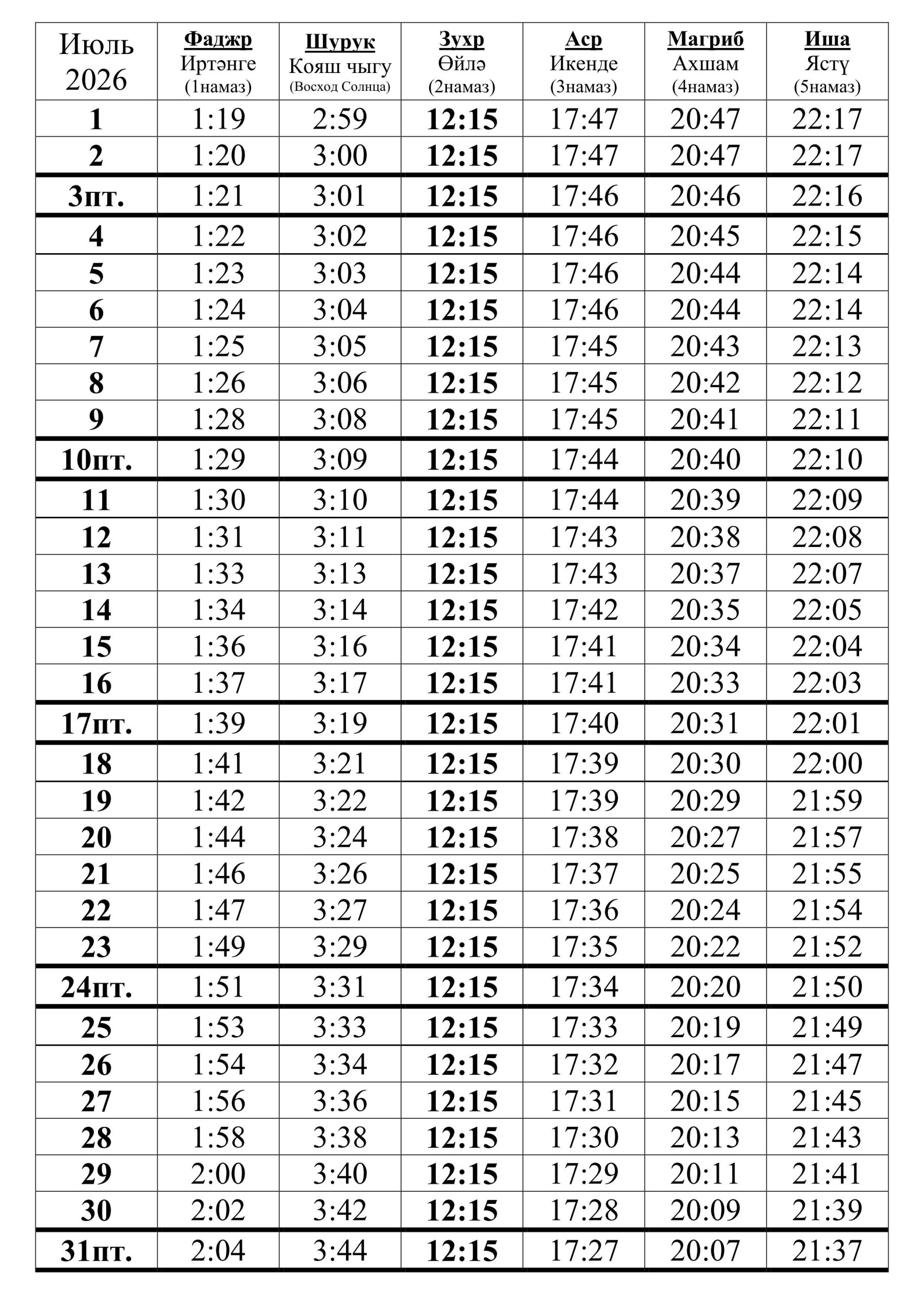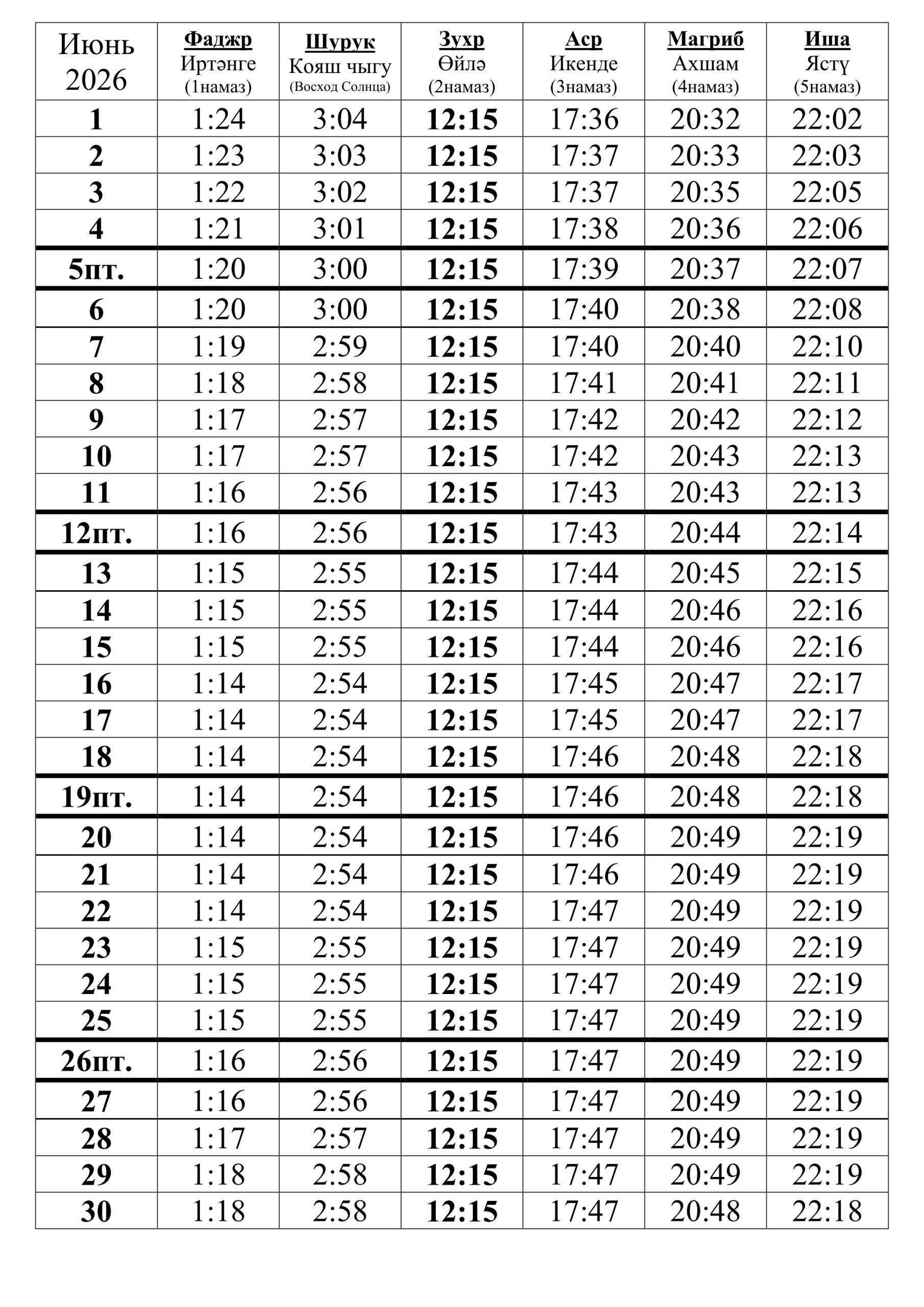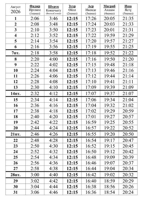 25 июня 2026г. (10 мухаррам) |