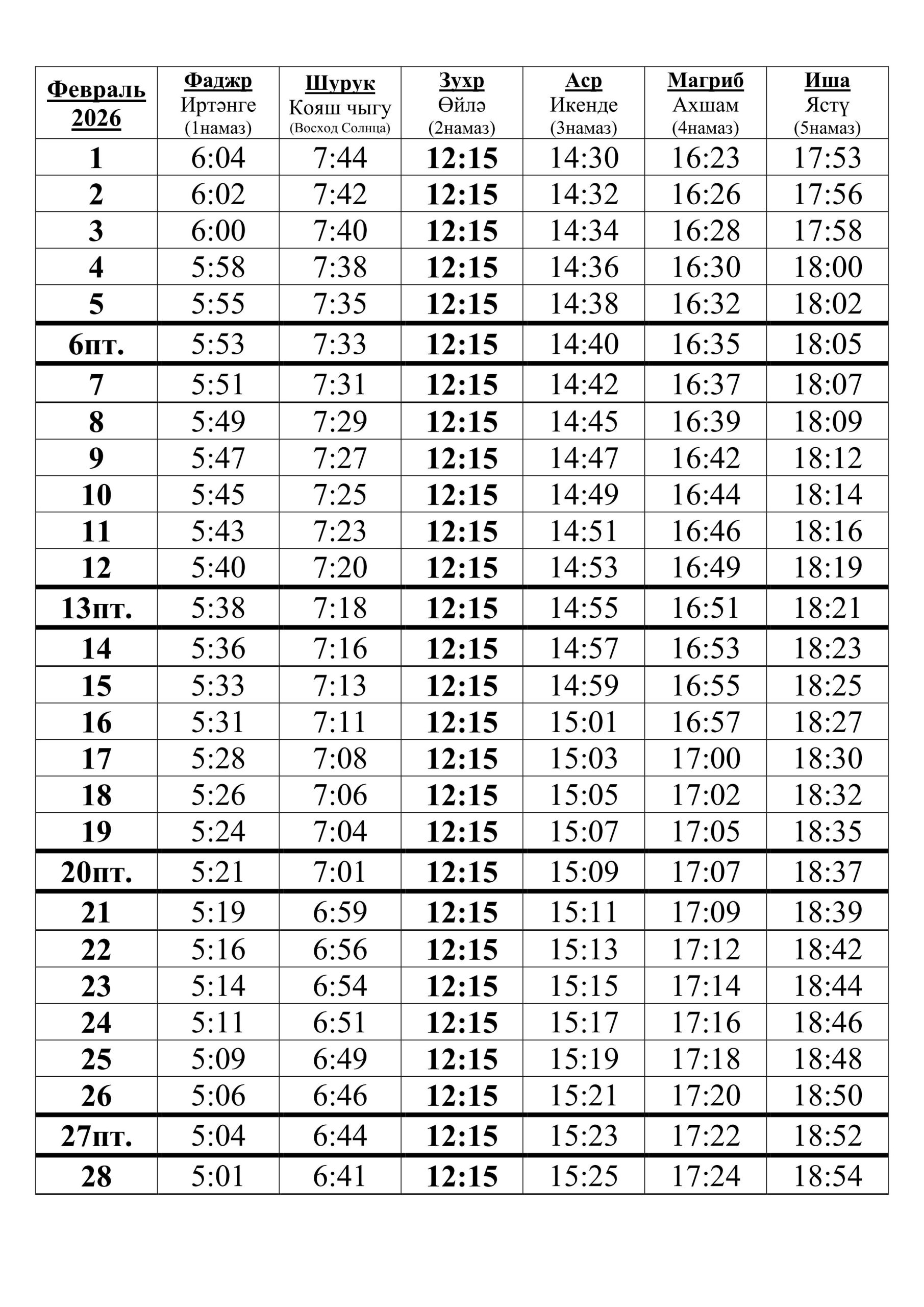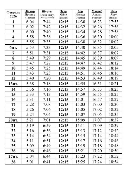 2-3 февраль 2026 г. (14-15 шагъбан) |