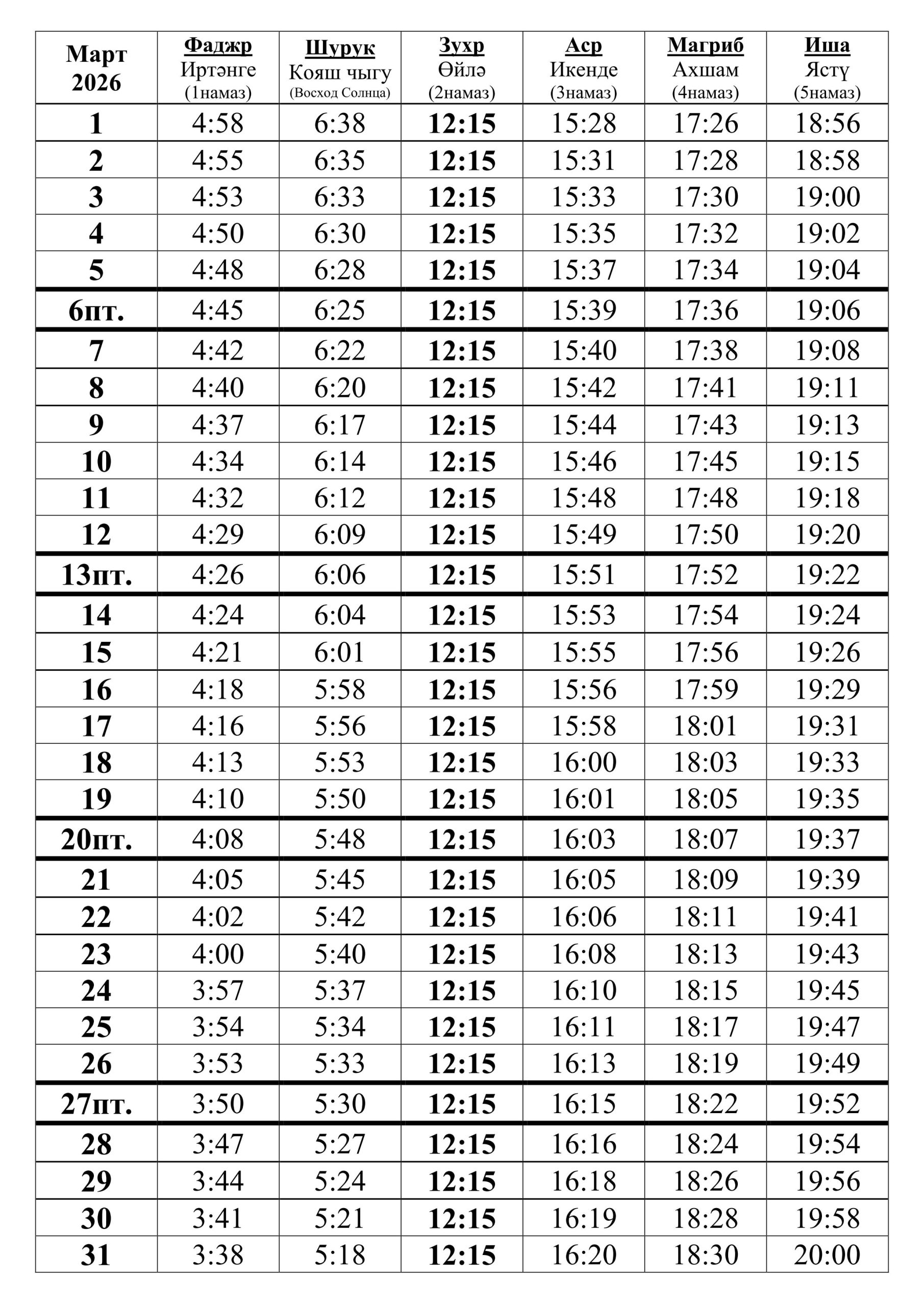 Рамазан 2026 Сернур PDF / Март 2026 Сернур PDF