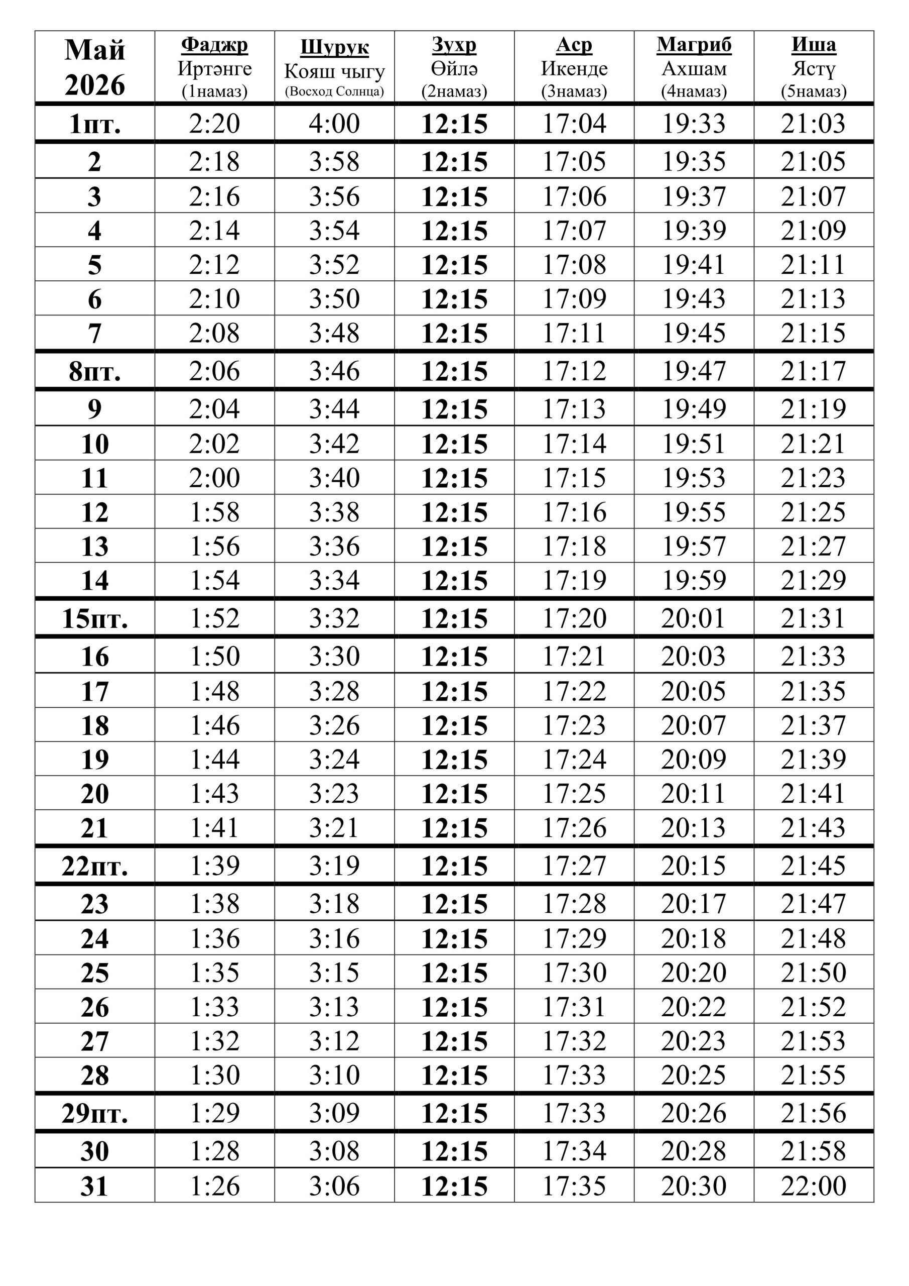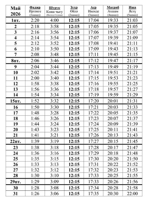 26 мая 2026г. (9 зуль хиджа) |